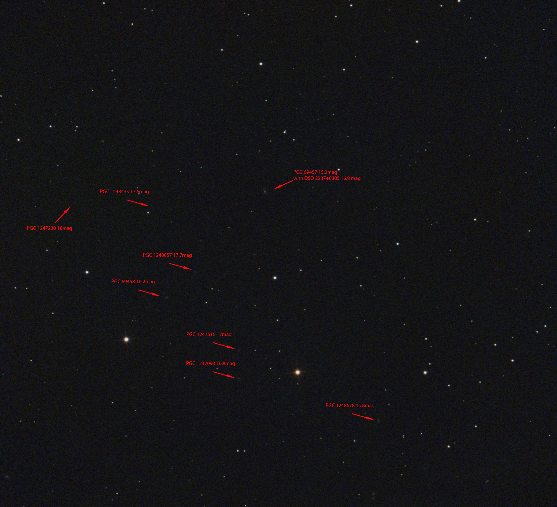 The only thing that i can see : the Core of PGC 69457 is very bright, if you look to the other Galaxys in the Picture.
