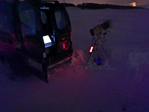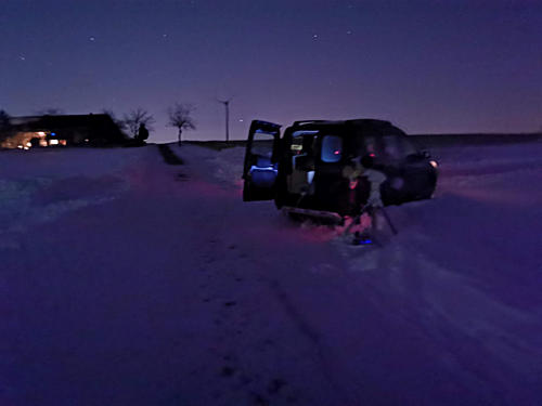 Es war mit -11 Grad und Ostwind sehr kalt und der Himmel auch hier sehr hell im Vergleich zu Nächten ohne Schnee.
