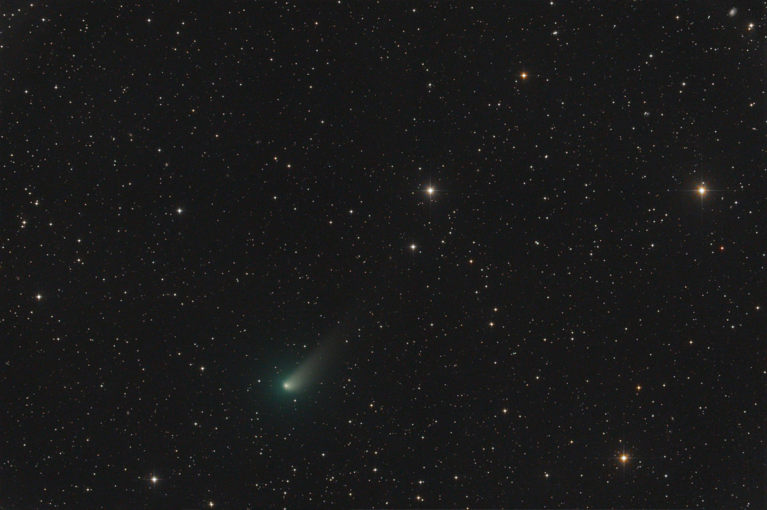 QHY11 CCD / 305mm Newton bei 1186mm / 01:33 - 02:13 MESZ / 6x300sec. Luminanz / RGB aus Takahashi E130D Bild / aufaddiert auf den Kometen / Abbildungsgröße 35 %