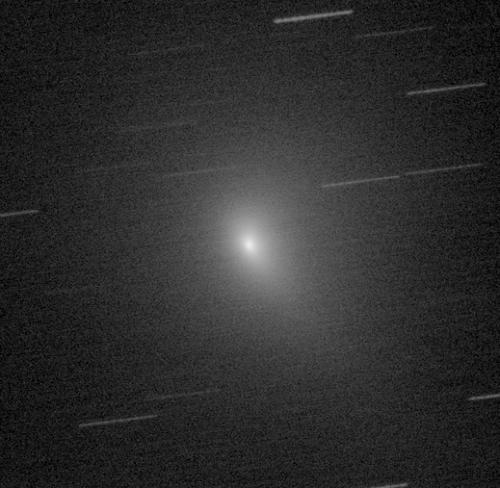 305mm Newton / 1185mm Brennweite / QHY11 CCD / 2x2 Binning / 20:18 - 20:39 UT / 20x1min / Luminanzfilter / aufaddiert auf den Kometen / Sternfeld einkopiert