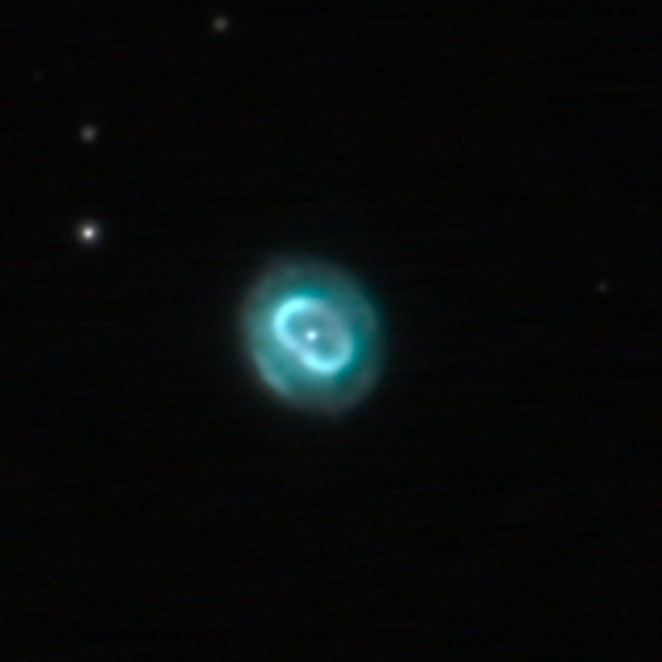 Mit 9.2mag und 0,2 Bogenminuten ein heller kleiner PN.